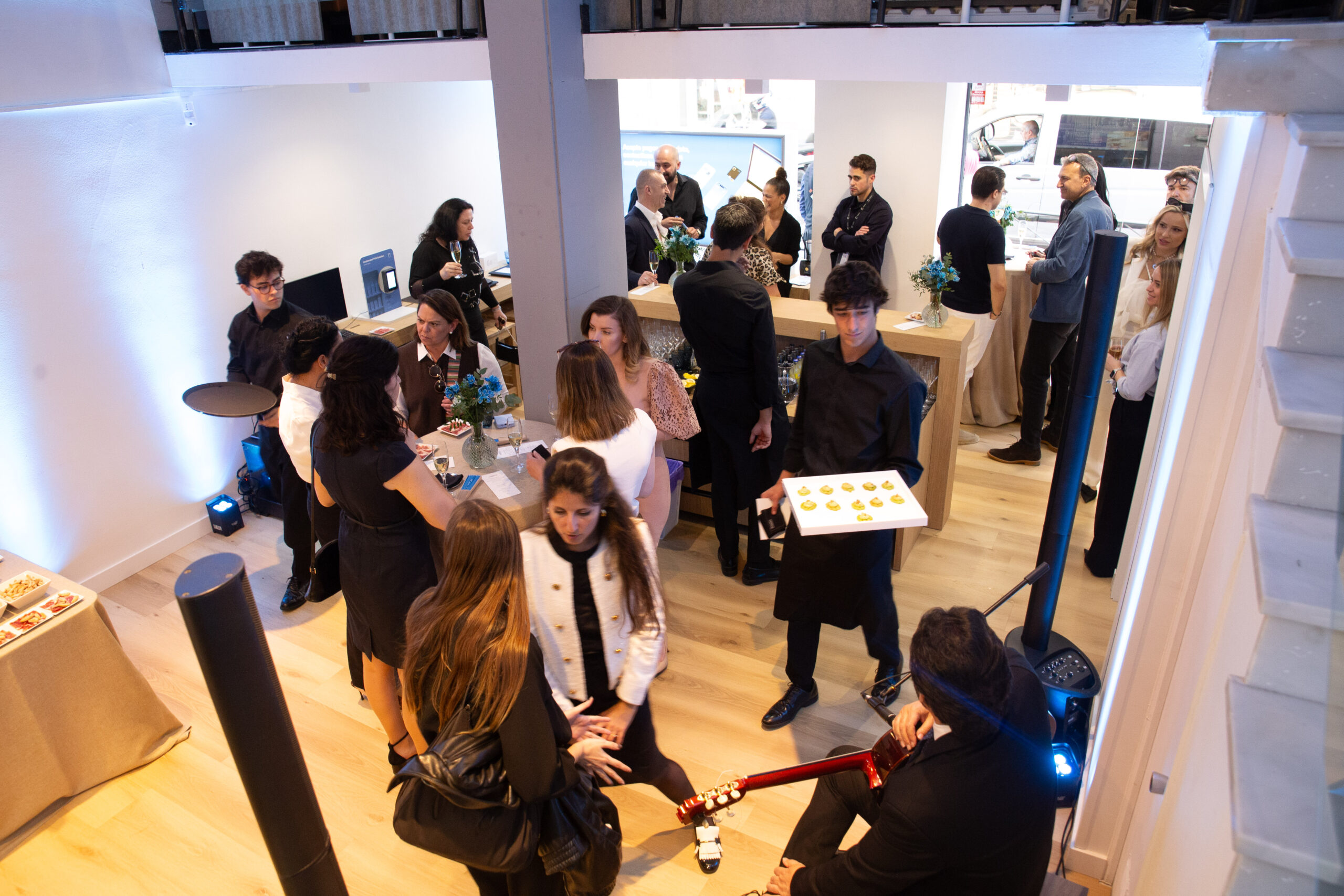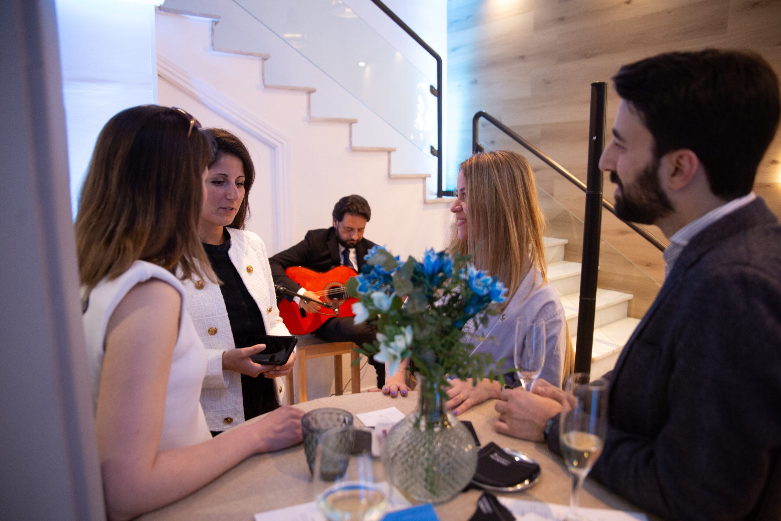 Envision a captivating blend of Spanish flair interwoven throughout the event – a culinary journey featuring a myriad of enticing seasonal tapas, expertly carved ham, and the effervescent allure of Cava housed in resplendent blue bottles. The dulcet melodies of a Spanish guitar player enchanted our guests, setting a harmonious tone for the evening’s festivities.