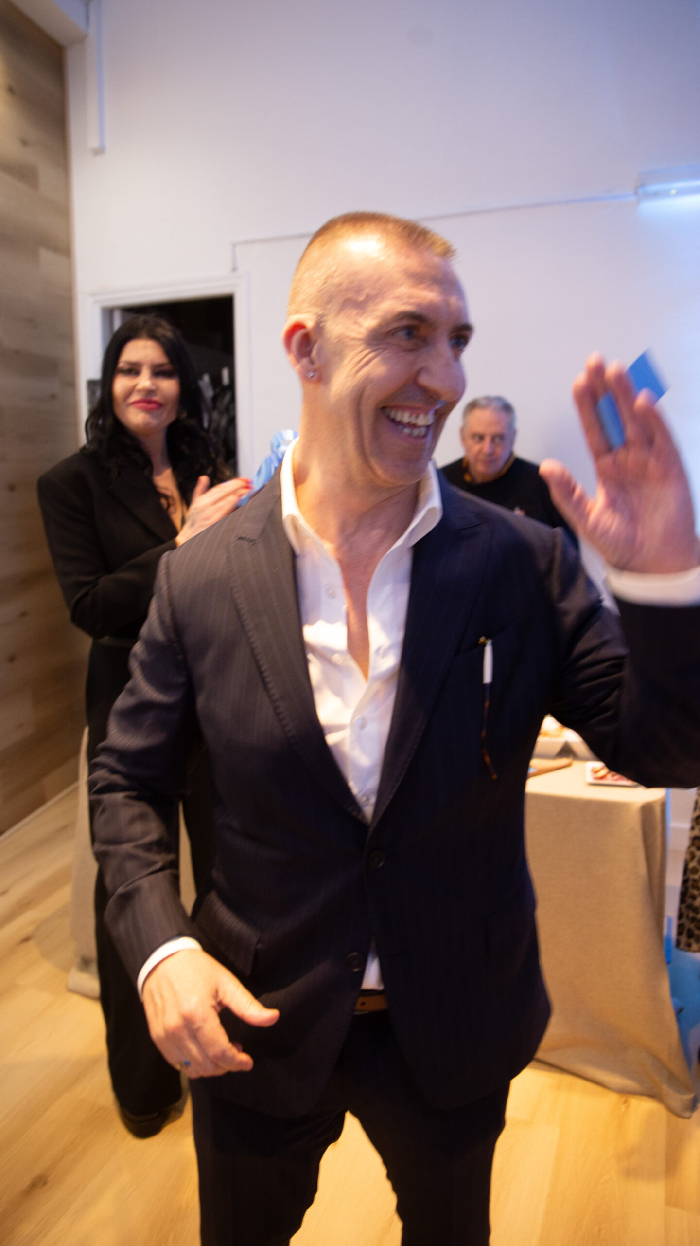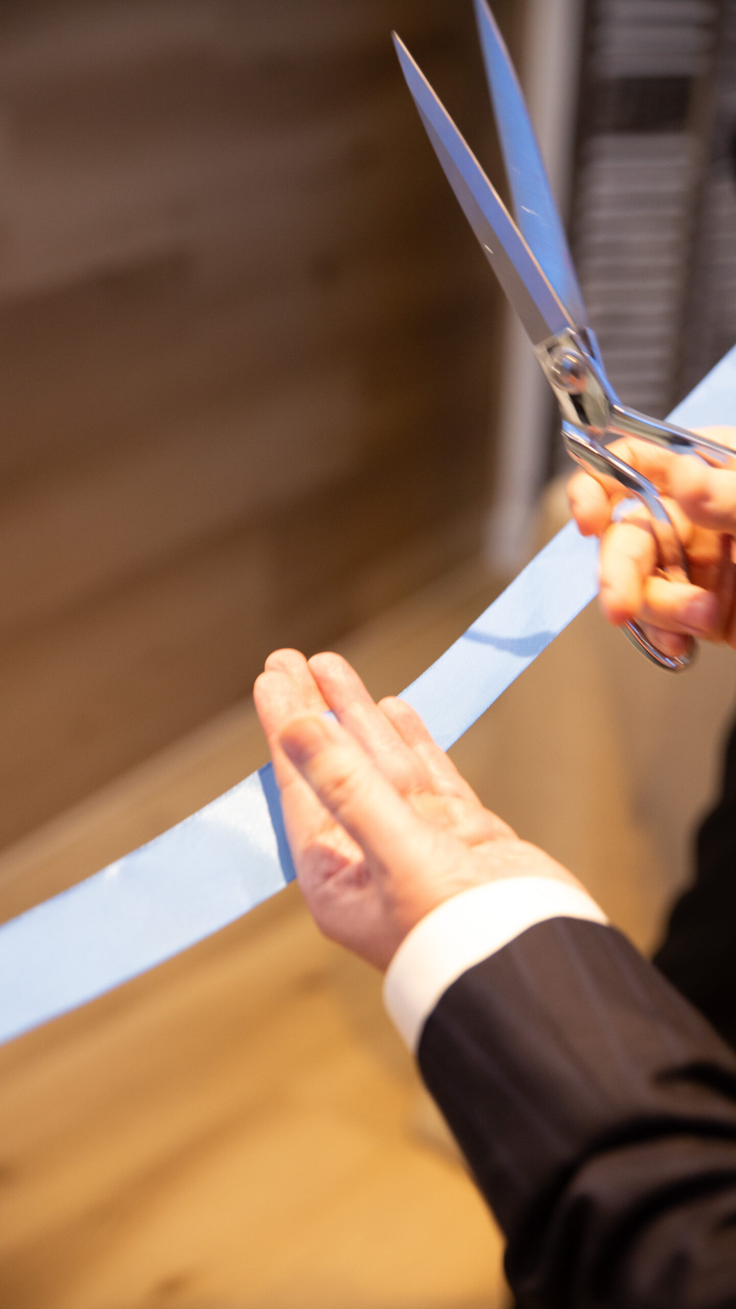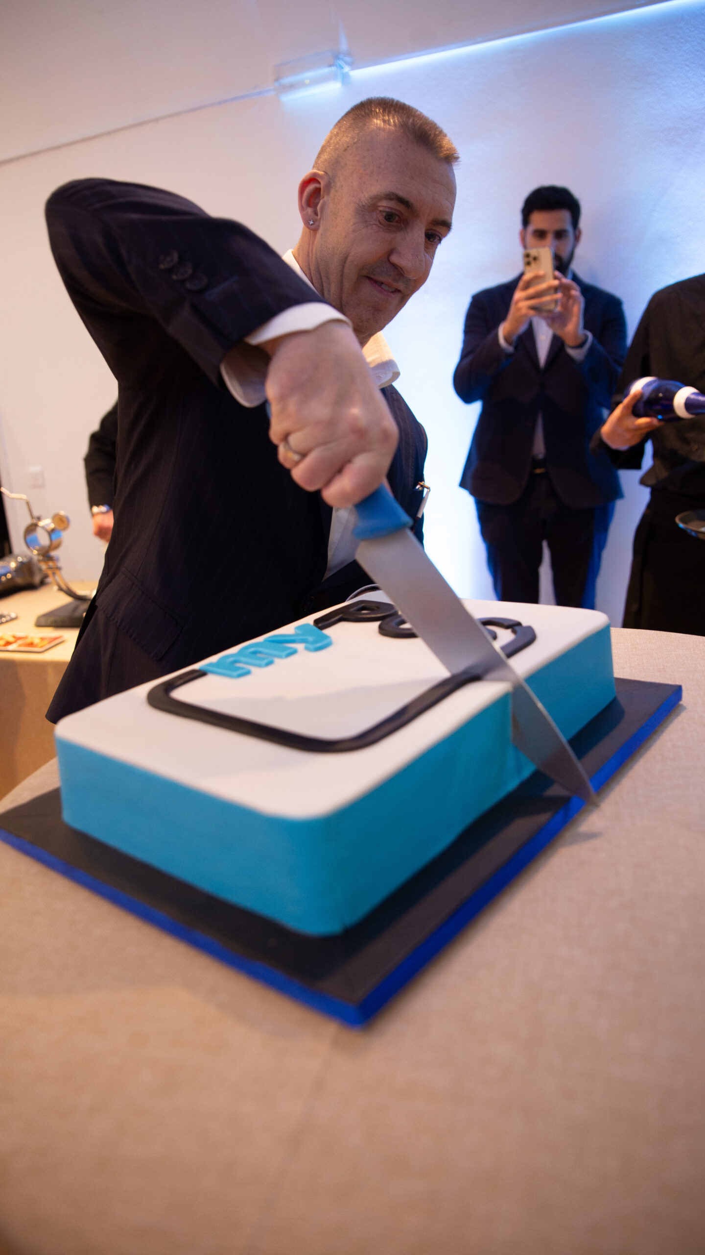To ceremoniously mark the commencement of this momentous occasion, the CEO of the company gracefully cut the symbolic blue ribbon, inviting guests to raise a toast with the finest Cava and indulge in a delectable piece of branded cake.